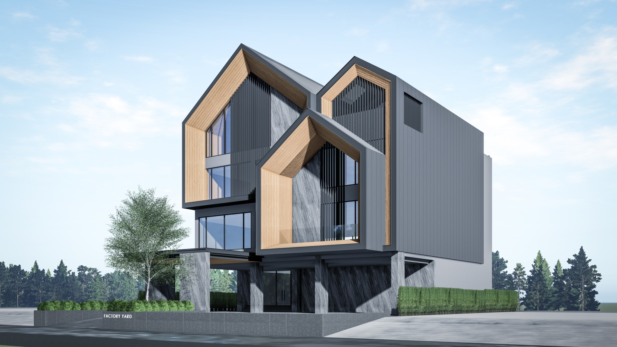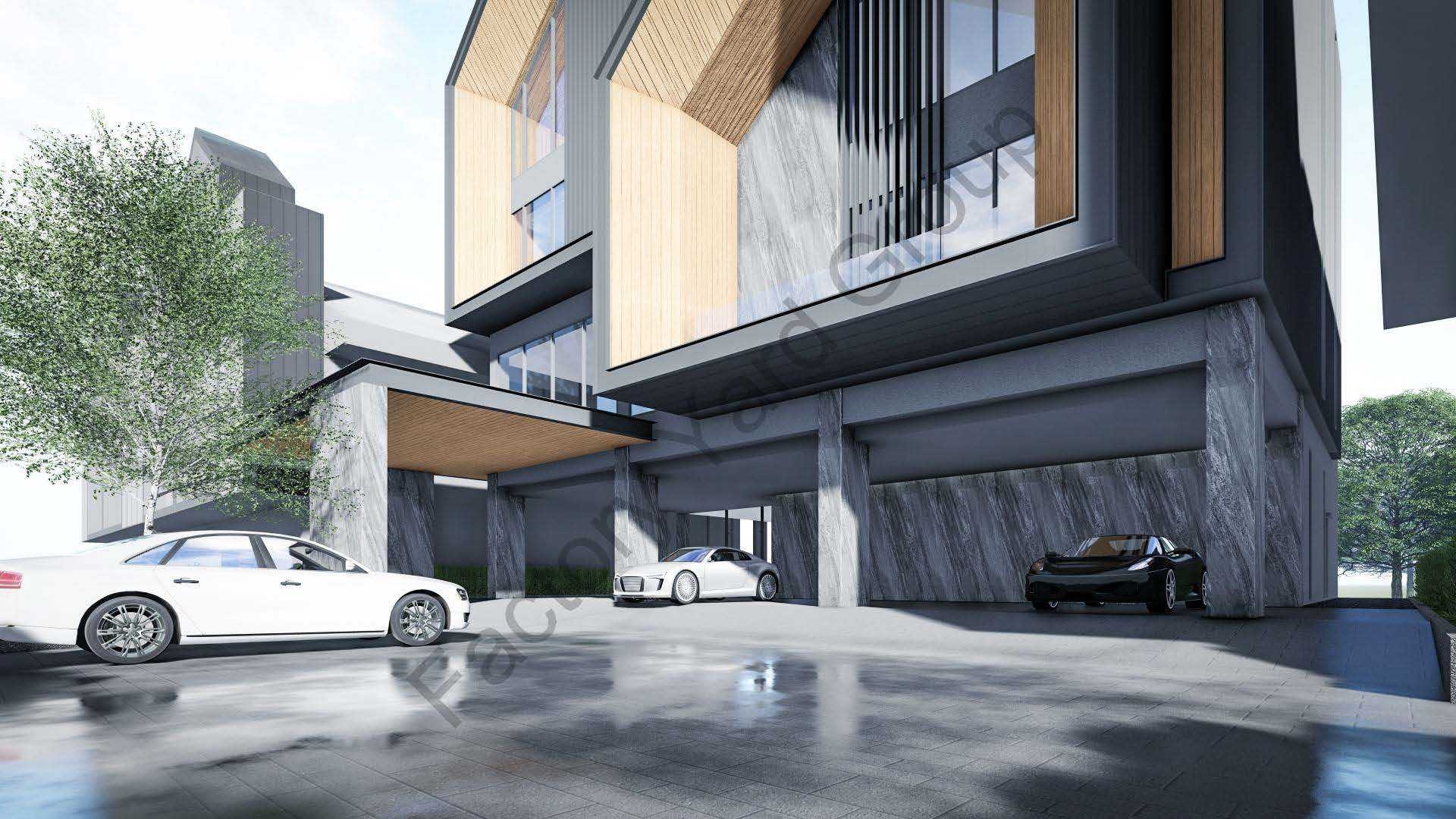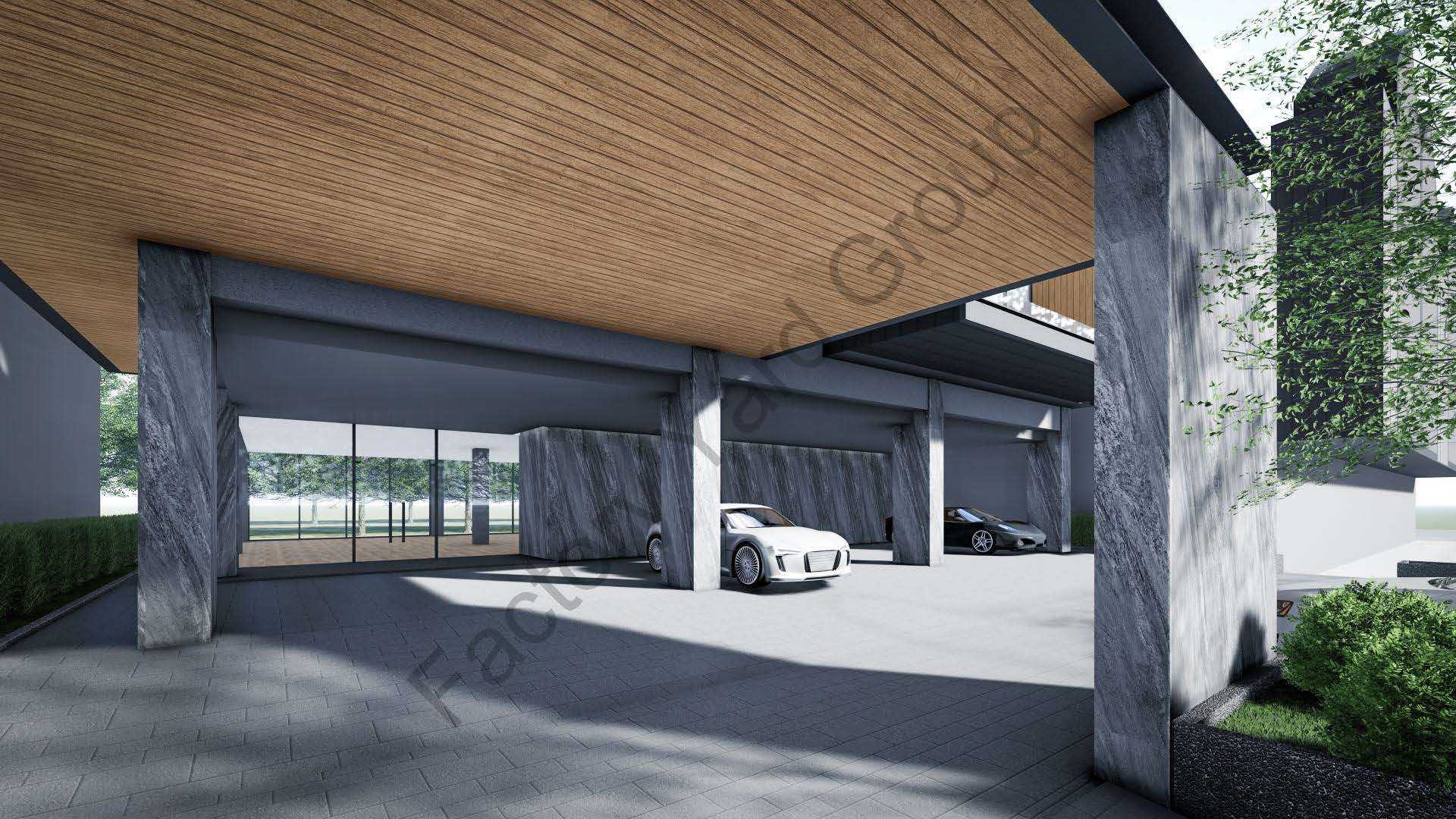 The project, AREA OF THE FUTURE, emphasizes earth-tone materials such as brown wood for a harmonious and sophisticated look in every detail. We design for your positive image on a land size of 190 square wah with a total usable area of 1,493 square meters, divided into 4 floors with areas ranging from 348 to 436 square meters. It includes relaxation zones and elevators for convenience, as well as parking spaces for more than 13 cars to accommodate employees and clients.
