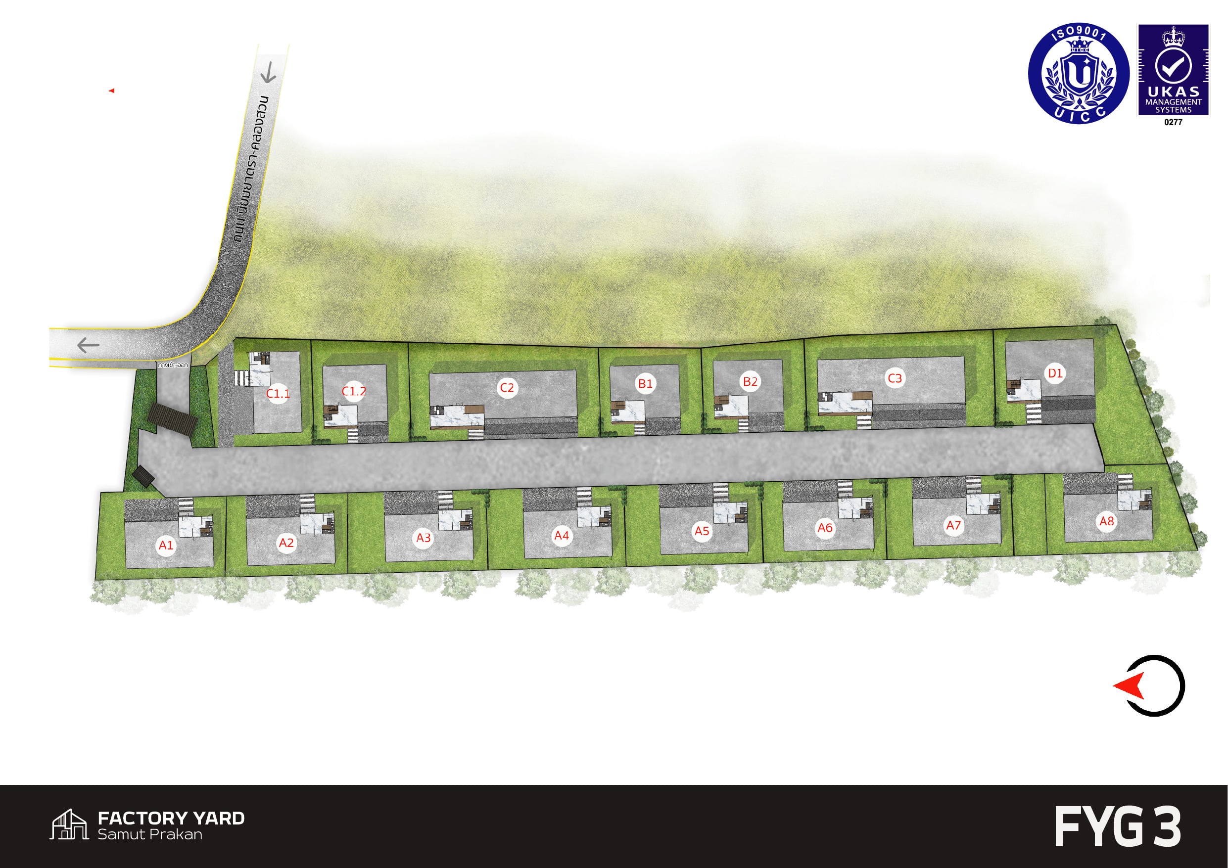 The project consists of a total of 9 factories with offices, situated on a total area of 12 rai, waiting for you to become the owner. The factories have a height of 12 meters with 2-story offices, a floor load capacity of 3 tons/sq.m., 3-phase electricity with sizes of 30/100 amps, located in a purple zone where you can obtain factory licenses 100%, and there is definitely no flooding. A professional team is ready to provide advice on loan applications and assist in obtaining Ror.Ngor. 4 and GMP until successful.