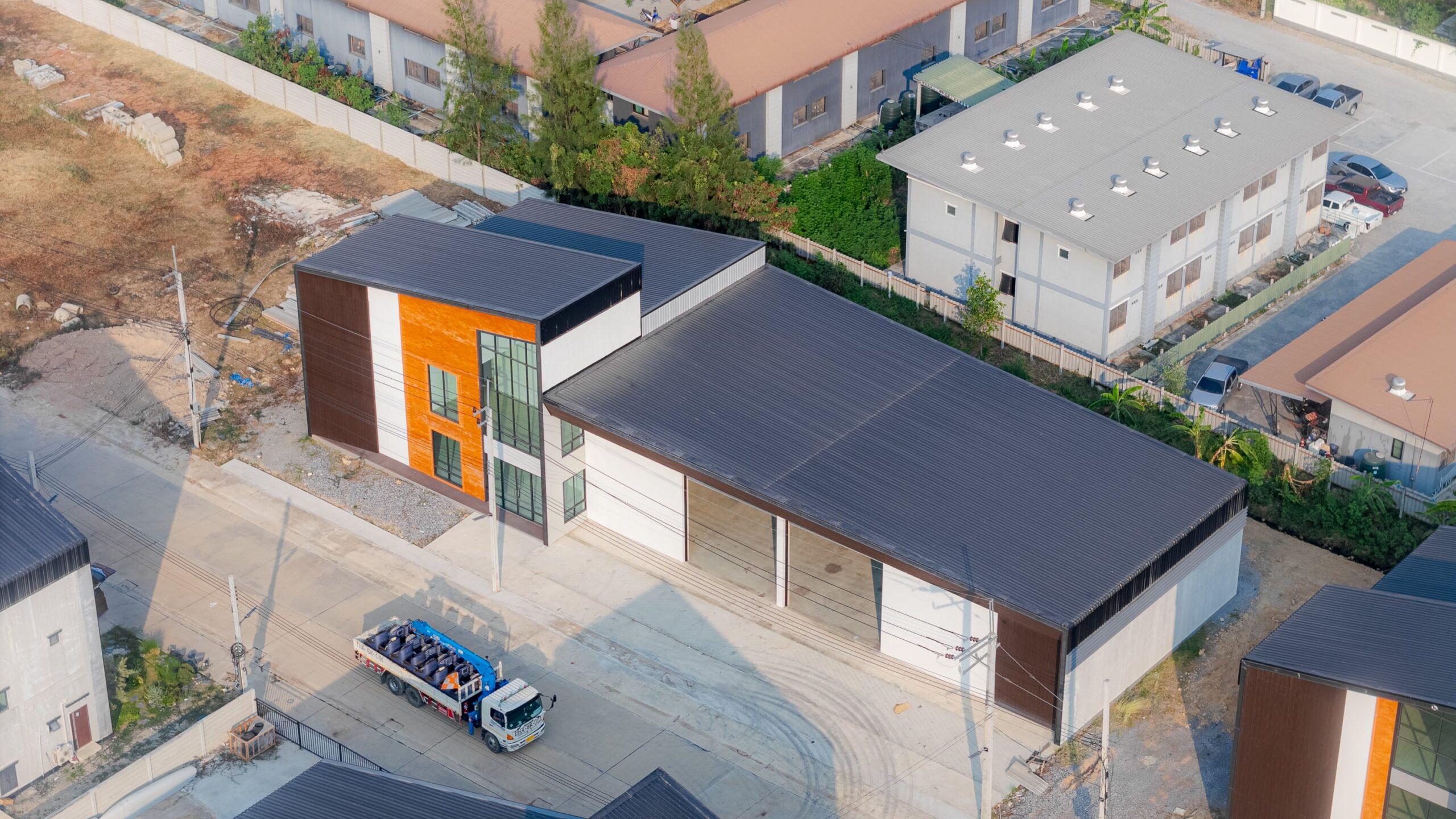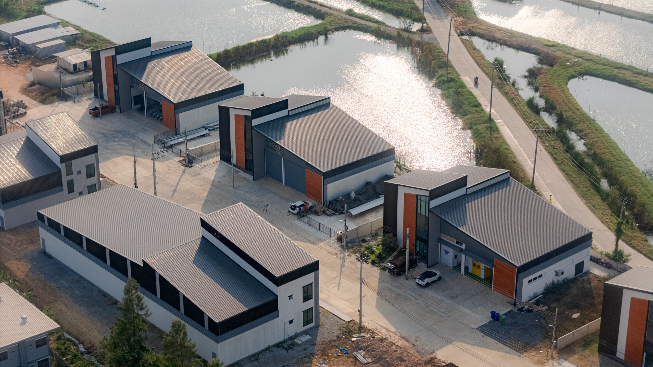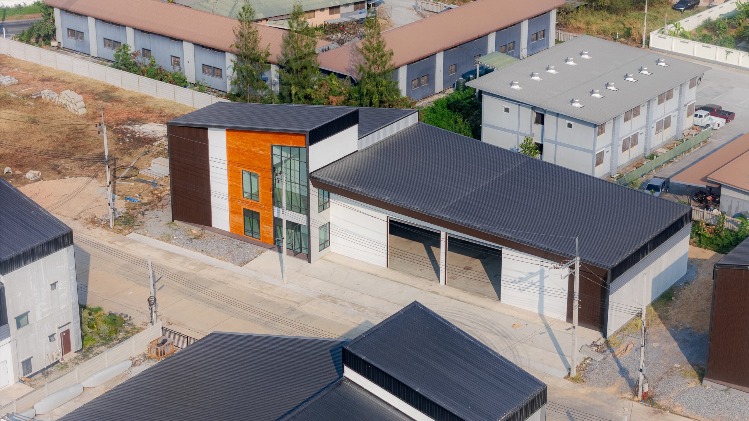 The project consists of a total of 9 factories with offices, situated on a total area of 12 rai, waiting for you to become the owner. The factories have a height of 12 meters with 2-story offices, a floor load capacity of 3 tons/sq.m., 3-phase electricity with sizes of 30/100 amps, located in a purple zone where you can obtain factory licenses 100%, and there is definitely no flooding. A professional team is ready to provide advice on loan applications and assist in obtaining Ror.Ngor. 4 and GMP until successful.
